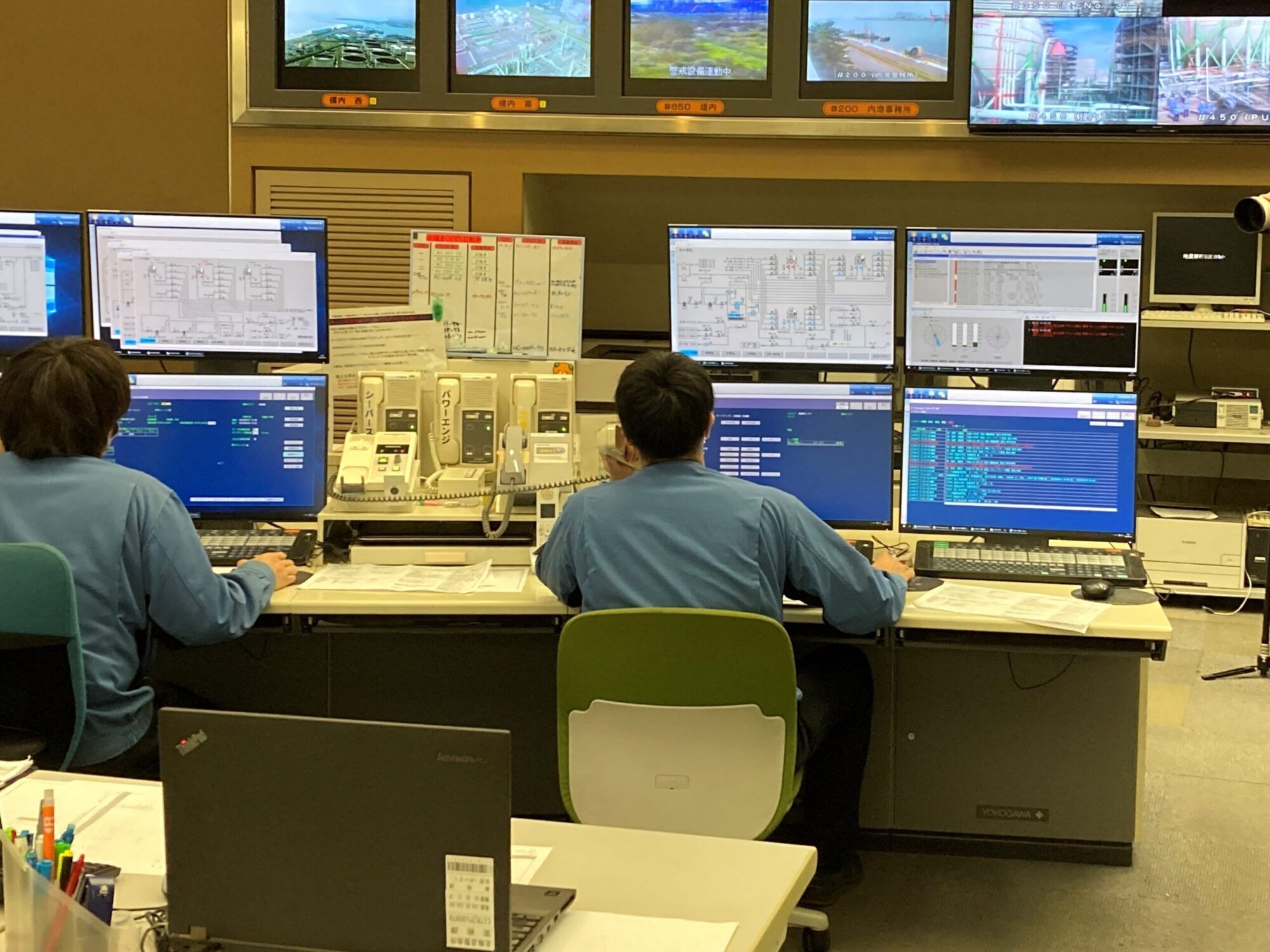 指令室での各設備の操作など
