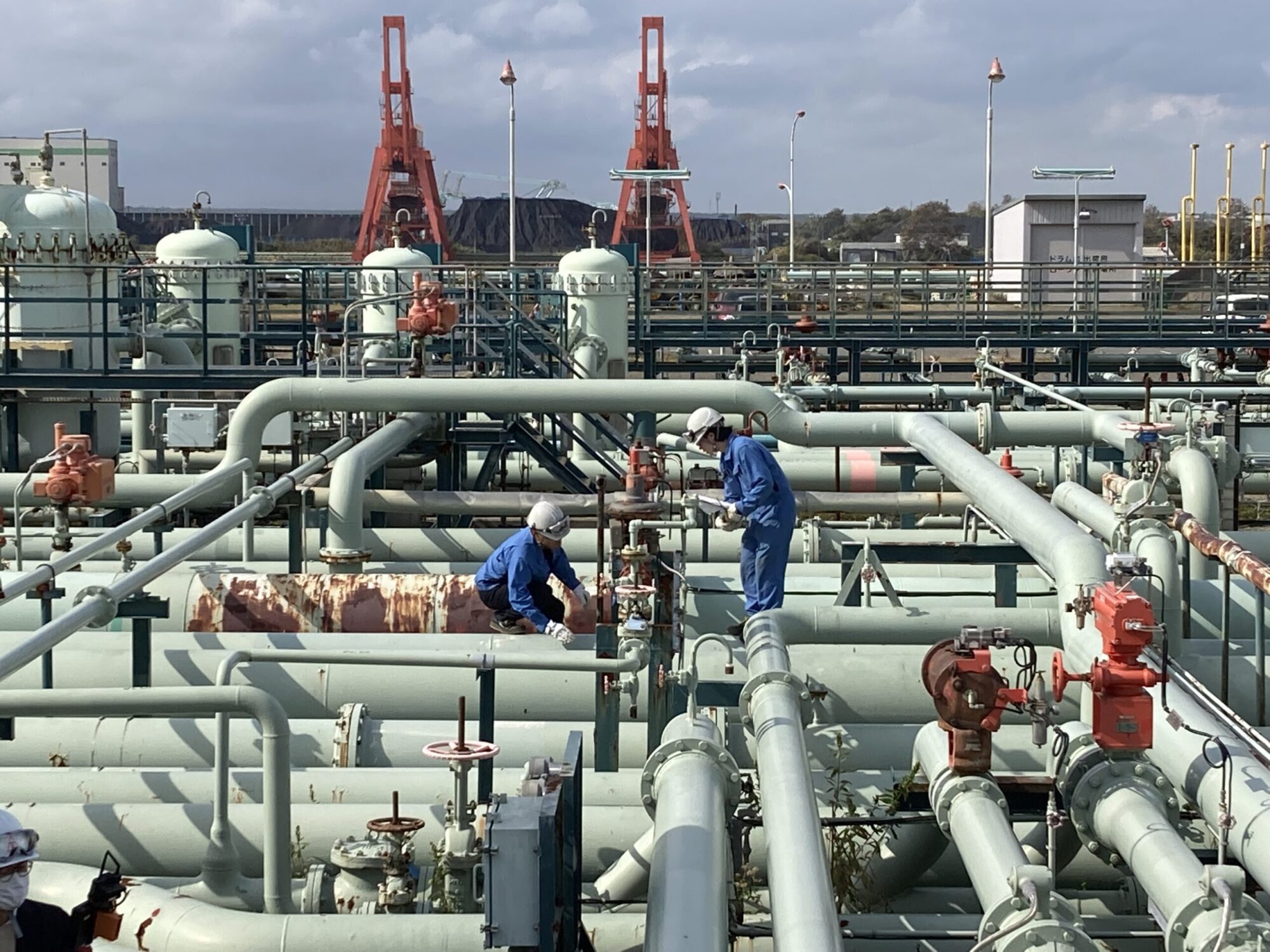 タンクエリアの点検やサンプル回収